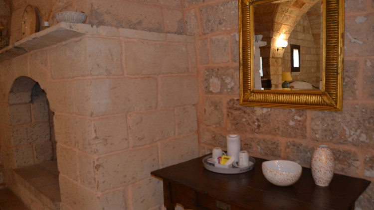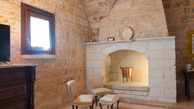 The “Casa del Massaro” room is located in the area of the old stables of the masseria. The room is large about 50 square meters and is part of the historic rooms. The room is embellished by a beautiful fireplace and by the starred-vaults of the Salento. Equipped with all the comforts and furnishings
